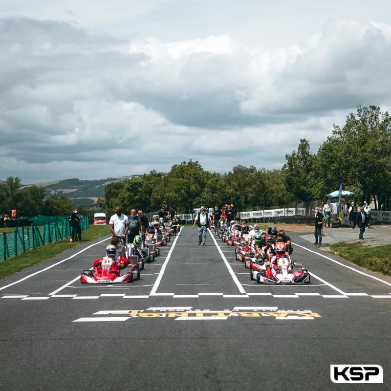 Les trois premiers de la grille de départ entamaient dans le même ordre la finale de Belmont-sur-Rance du Championnat de France. Pierre Loubère (Birel ART/TM) menait devant Thomas Mich (Birel ART/TM) et Hubert Petit (Sodi/TM). Craig Tanic (Birel ART/TM) récupérait ensuite sa 4e place face à Jean Nomblot (Sodi/TM) tandis qu’Arthur Carbonnel (Sodi/TM) revenait déjà 6e. Yohan Soguel (Oberon/Iame) se joignait à la bagarre en 5e position, mais Carbonnel ne se laissait pas faire.
