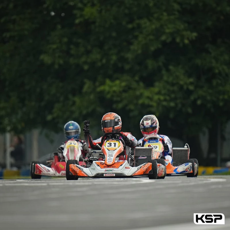 Arthur Carbonnel (Sodi/TM) ne s’élançait pas de la meilleure manière à l’extinction des feux et se retrouvait 3e alors qu’Enzo Valente (Alpha Karting/TM) menait devant Nelson Bondier (Birel ART/TM), très bien parti. Pierre Bourgeois (Tony Kart/TM) était pointé 4e et Pierre Loubère (Birel ART/TM) 5e. Carbonnel ne tardait pas à dépasser Bondier et se lancer à la poursuite de Valente. Au 5e tour, Hubert Petit (Sodi/TM) avait repris 10 places en 15e position. Nathan Hédouin (Birel ART/TM) effectuait un bon début de course à la 7e place (+10). A mi-parcours, les trois premiers étaient séparés de moins de 3 dixièmes chacun. Loubère, avec le titre en vue, ne résistait pas exagérément à Paul Loussier (Sodi/TM) qui passait 5e. Carbonnel était à nouveau distancé par Valente, Petit retombait 31e. Carbonnel remportait une victoire inattendue en devançant Valente dans le dernier tour. Bondier complétait logiquement le podium devant Bourgeois et Hédouin, Loubère terminant 6e. Eric Ramon (Drago Corse/TM) 8e, Gabin Leuillet (Praga/TM) et Jérémy Potain (Birel ART/TM) complétaient le top 10.