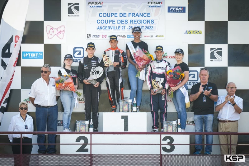 Avant la finale 3 Nationale de la Coupe de France d’Angerville, Jules Roussel (Sodi/TM) et Louis Iglesias (CRG/TM) étaient à égalité en tête du classement. Iglesias conservait l’avantage à l’extinction des feux, mais passait en 3e position à la fin du 1er tour tandis que Roussel menait devant Adam Rahali (Kosmic/Rotax). Roussel rétrogradait ensuite 4e et Rahali prenait la tête. Maxence Bouvier (Sodi/Rotax) pointait 3e tandis que Louis Comyn (Kosmic/Rotax) retrouvait la 4e position. Bouvier redescendait au6e rang pendant qu’Oscar Goudchaux (FA Kart/Rotax) remontait 4e. Comyn s’emparait de la 2e place au détriment d’Iglesias et se hissait ensuite en 1re position devant Rahali. Hugo Herrouin (Kosmic/Rotax) avait progressé de 8 places au 8e rang derrière Sacha Baktoun (Redspeed/Rotax). A la mi-course, Comyn menait moins de 2 dixièmes devant Rahali talonné par Iglesias tandis que Goudchaux se rapprochait. Iglesias mettait la pression sur Rahali, mais chutait 8e au 13e passage. Tom Langlois (Tony Kart/Rotax) revenait 4e devant Herrouin. Iglesias dépassait ensuite Roussel pour la 6e place et reprenait la tête du classement virtuel. Nael Marin Dubuard (Exprit/Rotax) renonçait. Comyn franchissait en premier la ligne d’arrivée, mais une pénalité de spoiler décroché offrait la victoire à Rahali. Bouvier prenait la 2e place devant Iglesias et Roussel.