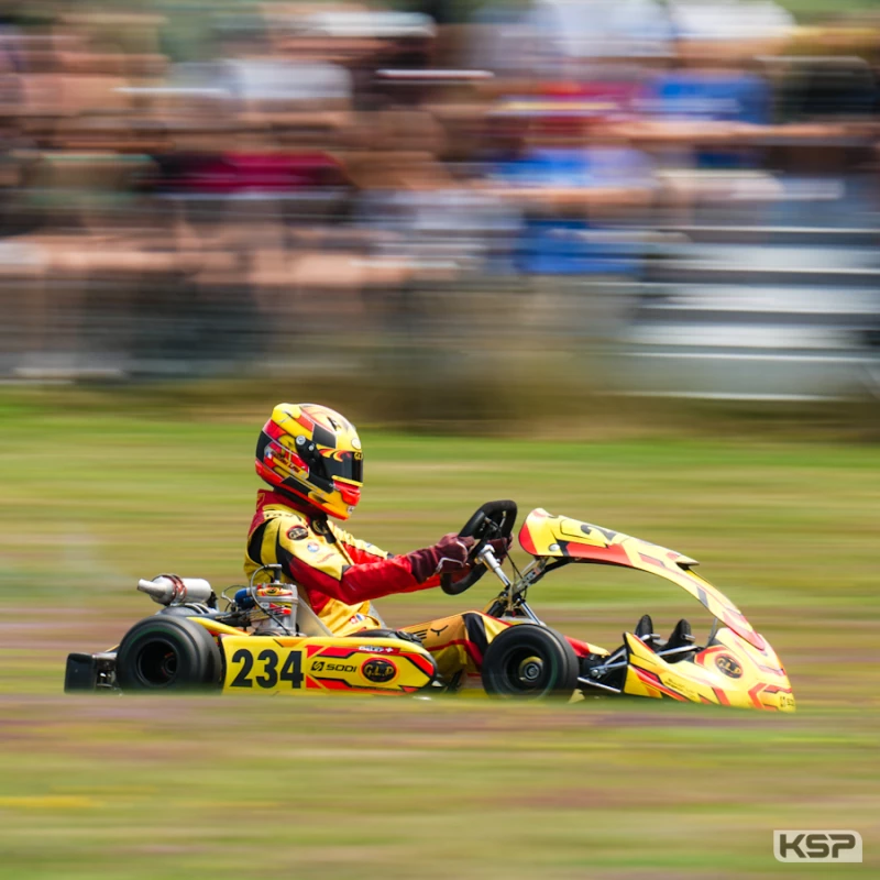 Malo Bolliet (KR/Iame) prenait un bon départ devant Medhi Lassoued (Sodi/Iame) puis Ethan Pharamond (Kosmic/Iame). Maxime Geley (Sodi/Iame) revenait rapidement menacer Pharamond et l’attaquait à l’amorce du 3e tour. Kevin Bejeannin se hissait en 2e position, mais Pharamond répliquait. Bolliet avait rétrogradé 5e derrière Edouardt Giurca (Tony Kart/Iame). Nicolas Ville (Birel ART/Iame) était pointé 6e, Adam Rahali (Kosmic/Iame) 7e et Lassoued 8e. Geley s’envolait en tête de la course, Pharamond suivait à distance et Giurca cédait sa 3e place face à Bejeannin. Rahali ne tardait pas à se frayer une place dans le top 3. A la mi-course, Geley possédait 2,3’’ d’avance sur Pharamond, lui-même à 2,3’’ de Rahali. La procédure slow était enclenchée au 17e tour à la suite d’un incident. La course repartait pour 3 tours. Rahali profitait du restart pour dépasser son équipier Pharamond et tenter de se rapprocher de Geley, toujours leader. Geley remportait une belle victoire face à Rahali. 3e sur la ligne, Pharamond était pénalisé de 5’’ en 16e position pour avoir causé une collision évitable. Bejeannin récupérait alors la 3e place devant Hugo Herrouin (Alonso Kart/Iame) +8 places et Jolan Raccamier (Kosmic/Iame) 5e.