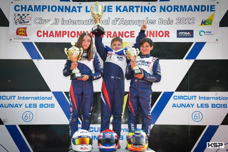 La physionomie des courses a bien changé depuis le début de l’année. La formation assurée par la FFSA Academy porte ses fruits et de nouveaux talents commencent à émerger. L’évolution est d’ailleurs sensible à tous les échelons du groupe. Trois noms sont sortis du lot à Aunay-les-Bois : Kimi Mérieux grâce à sa pole position en qualification, Enzo Perrot-Thommerot invaincu dans les manches qualificatives et Kimi Tani, l’un des deux Finlandais, vainqueur de la préfinale et de la finale.