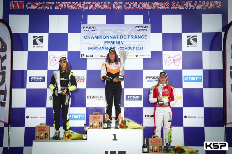 À Saint-Amand, le Championnat de France Féminin n’a pas connu un suspense palpitant, mais la plupart des courses ont pourtant été intéressantes à suivre. Luna Cléret (Exprit/Iame) a effectué un sans-faute en tête de la compétition malgré la présence constante de Royanne Hamidat Sodez (Kosmic/Iame) sur ses traces à partir des manches qualificatives. Lydie Valichon (FA Kart/Iame), Tania Cirelli (Exprit/Iame) et Chloé Cannard (Redspeed/Iame) se sont longtemps affrontées dans le top 5, rejointes dans les phases finales par Léonie Claude (Tony Kart/Iame). Cléret était logiquement titrée face à Hamidat Sodez à l’issue de la finale. Cannard terminait 3e devant Claude et Valichon, alors qu’Alexandra Hervé (Tony Kart/Iame) prenait la 6e position devant Cirelli.