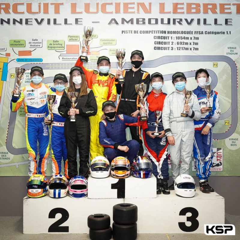 En Elite, le 6 Sodwin Racing (Sodi/Rotax) d’Antoine Colombel, Aymeric Borée et Louis Marchal bataillait en tête avec le 5 Team LGB Kartrunner (Tony Kart/Rotax) d’Arnaud Bouilland et Bruce Lorgère-Roux et le 24 Kartagene Wintec (Sodi/Rotax) de Lukas Papin et Gwenaël Loison. Le 8 Kartrunner (Tony Kart/Rotax) d’Alexandre Léotta et Julien Toscano suivait son tableau de marche et remontait progressivement vers la tête avec une belle régularité. Mais le 5 Team LGB se détachait irrémédiablement tandis que le 24 Kartagene Wintec purgeait sa pénalité de 7 minutes et rétrogradait au 5e rang (4e en Elite). Arnaud Bouilland et Bruce Lorgère-Roux (5-Team LGB Kartrunner) s’imposaient après 348 tours, quatre tours devant Alexandre Léotta et Julien Toscano (8-Kartrunner), suivi à 35’’ par Antoine Colombel, Aymeric Borée et Louis Marchal (6-Sodwin Racing).