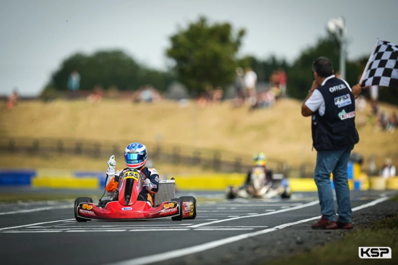 La 3e finale Master et Gentleman lançait l’après-midi de dimanche en Coupe de France à Angerville. Le trio de Master Maxime Bidard (Redspeed/Iame), Alexis Castellon (Redspeed/Iame) et Ludovic François (OTK/Iame) menait la danse devant le Gentleman Frédéric Ostier (Pantano/Iame). Celui-ci s’emparait rapidement de la 3e place au détriment de François. Bidard se détachait en tête à partir du 4e tour en enchainant les meilleurs temps, tandis que François s’efforçait de reconquérir la 3e position. Jérôme Cruchet (Tony Kart/Iame) mettait la pression sur Ostier pour le leadership Gentleman. A la mi-course, Bidard possédait 1,7’’ d’avance sur Castellon. Cruchet trouvait l’ouverture sur Ostier. Bidard assurait la Coupe de France Master en fin de course pour remporter sa 3e victoire avec le meilleur tour et une avance de 1,6’’ face à Castellon. François terminait 3e devant les Gentleman Cruchet et Ostier.
