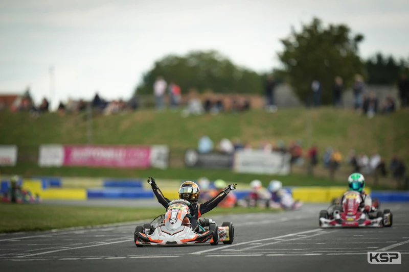 Gabriel Gerdil (Alonso Kart/Vortex) prenait les commandes dès le départ devant Mike Meynard (CRG/Vortex) et Auguste Foulon (Alonso Kart/Vortex). Théo Battisti (Formula K/Vortex) avait rétrogradé en 4e position, mais ne tardait pas à revenir 2e, 5 dixième derrière Gerdil. Antton Bouchard (CRG/Vortex) reprenait sa 4e position devant Meynard. Sur un rythme infernal, Battisti fonçait sur le leader et s’emparait de la P1 au 7e passage. Il ajoutait un nouveau succès à son actif plus de 6 dixi§mes devant Gerdil. Bouchard terminait 3e, Jayden Soupiron (Formula K/Vortex) 4e et Gabin Miquet (Energy/Vortex) 5e. Meynard avait retrouvé de la performance en fin de course et terminait 7e tandis que le meilleur tour était l’oeuvre de Léni Robillot Lagache (Tony Kart/Vortex).