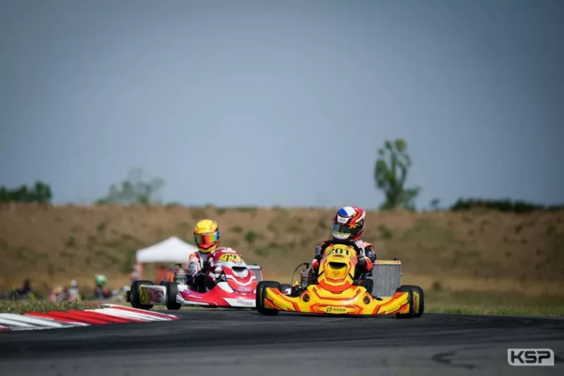 Maxime Geley (Sodi/Iame) venait tout de suite se placer dans les roues de Clovis Nougueyrède (Redspeed/Iame) avec Kevin Bejeannin (KR/Rotax) 3e et Lino Durand (Tony Kart/Iame) 4e, bientôt dépassé par Naël Marin Dubuard (Tony Kart/Iame). Geley avait pris les commandes, mais Nougueyrède restait menaçant à moins de 2 dixièmes. Marin Dubuard était 3e à une seconde. A la mi-course, la situation était incertaine avec 0,265’’ entre les deux premiers. Steven Servant (Sodi/Iame) avait repris 8 places au 5e rang et revenait sur Bejeannin qu’il dépassait au 10e tour. La bataille en tête s’intensifiait, mais Geley parvenait à gagner la course 0,135’’ devant Nougueyrède. Marin Dubuard terminait 3e à moins d’une seconde, Servant était 4e à 2,4’’ et Quentin Borne (CRG/Rotax) 5e devant Bejeannin, Matis Barbe (Kosmic/Iame) 7e et Arthur Robin (Gillard/Iame) 8e. Evan Mainier (Sodi/Iame) était remonté de 13 places en 15e position.
