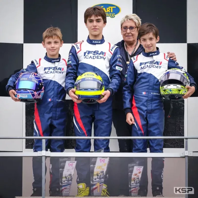 La Fondation Julie Tonelli pour l'Enfance soutient le Championnat de France Junior Karting depuis sa création en 2017. La formule de détection et de formation des jeunes de 12 à 15 ans opérée par la FFSA Academy caractérisée par la mise en avant des valeurs de sportivité et d’équité en parfait accord avec celles de la Fondation. La logistique est entièrement assurée par la FFSA Academy qui met à la disposition des académiciens de puissants karts de type OK-Junior strictement identiques sur le modèle du Trophée Académie FIA Karting. Les Exprit/Vortex sont ici chaussés de pneus Vega.